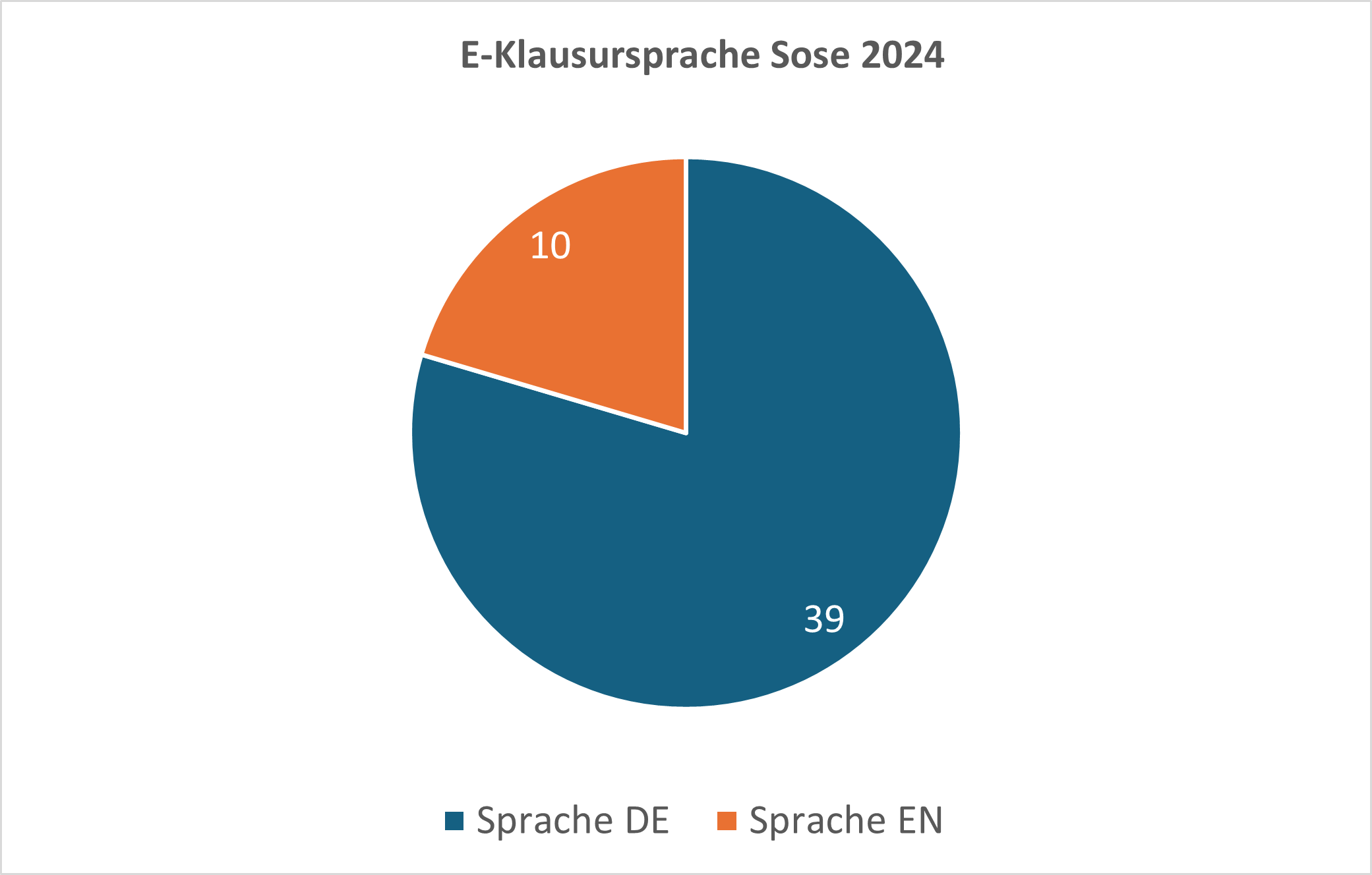 Im vergangenen Jahr wurden an unserer Hochschule insgesamt 50 E-Klausuren durchgeführt, davon elf in englischer und 39 in deutscher Sprache. Dies reflektiert ein signifikantes Übergewicht an deutschsprachigen Prüfungen.