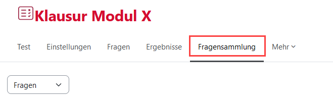 Die Fragensammlung(en) des Kurses finden Sie im Kurs unter „Mehr > Fragensammlungen (geteilt)“. Hinweis: Sie müssen sich hierzu im Menü des Kurses befinden, nicht im Test.