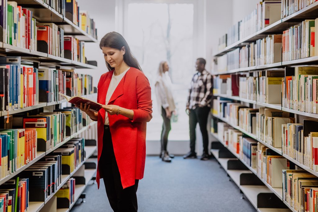 - Bibliotheken am Campus: Umfangreiche Fachliteratur, Online-Ressourcen, E-Books und ruhige Lernplätze stehen sowohl vor Ort als auch über die Online-Bibliothek zur Verfügung. Einführungen für Neueinsteiger*innen erleichtern den Einstieg.