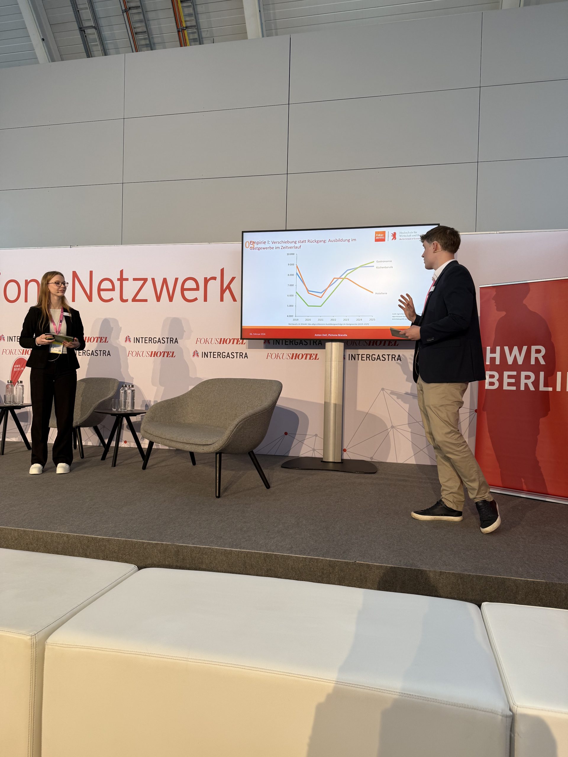 Im Vortrag „NextGen Hospitality“ gaben Pichona Rebekka Brendle und erneut Anton Doll Einblicke in Erwartungen junger Talente an die Branche.
