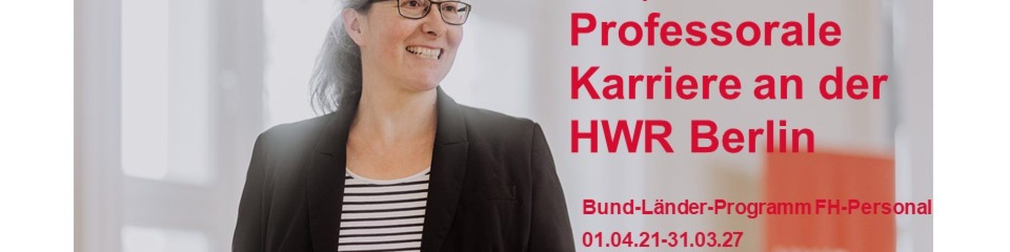 Seit dem 1. April 2021 wird an der HWR Berlin das Projekt Professorale Karriere an der HWR Berlin („ProfKarriere“) durchgeführt. Die Projektlaufzeit endet zum 31.03.2027.